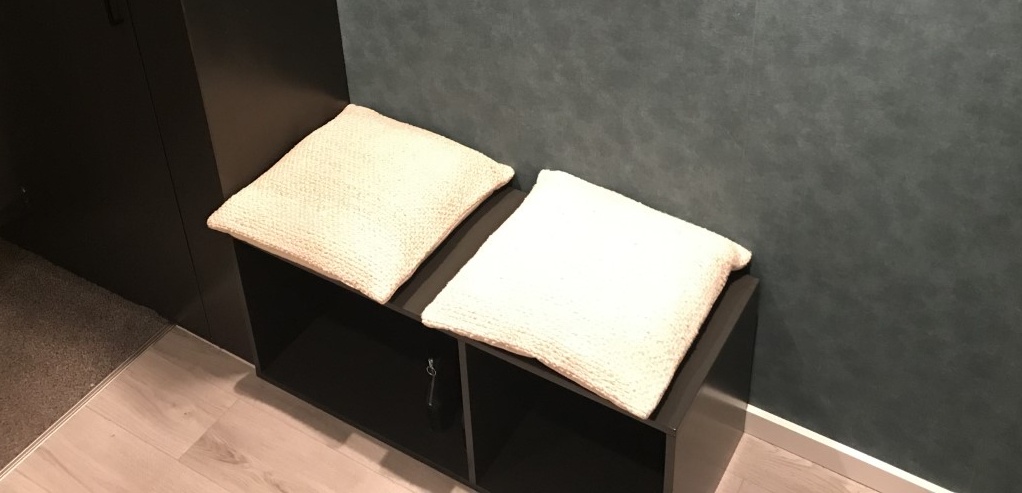 Kapstok in de hal verwijderd. Hal behangen. Zijwand meterkast vervangen. Meterkast en voorraadkast geschilderd. Bankje gemaakt. Verwarmingsombouw gemaakt. Trap geschilderd.