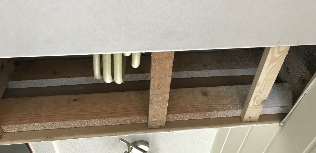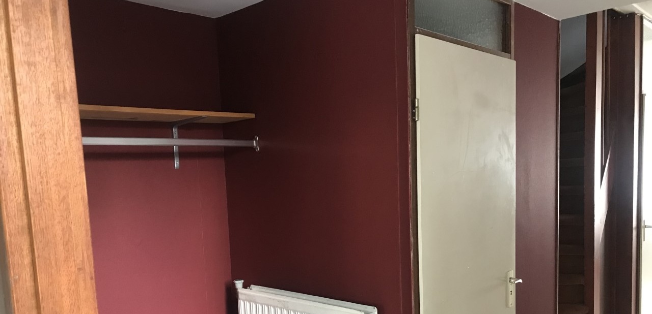 Plafond in hal na lekkage verwijderd en opnieuw geplaatst, muren behangen, schootjes geschilderd en muren in de keuken gesausd.