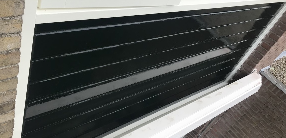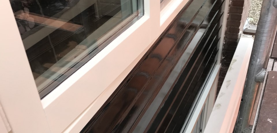 Kozijnen gegrond en 2 x afgelakt. Rabatdelen gegrond en 2 x afgelakt. 2 onderdorpels met houtrot zelf verwijderd en nieuwe laten plaatsen. Onderdorpels gegrond en 2 x afgelakt.