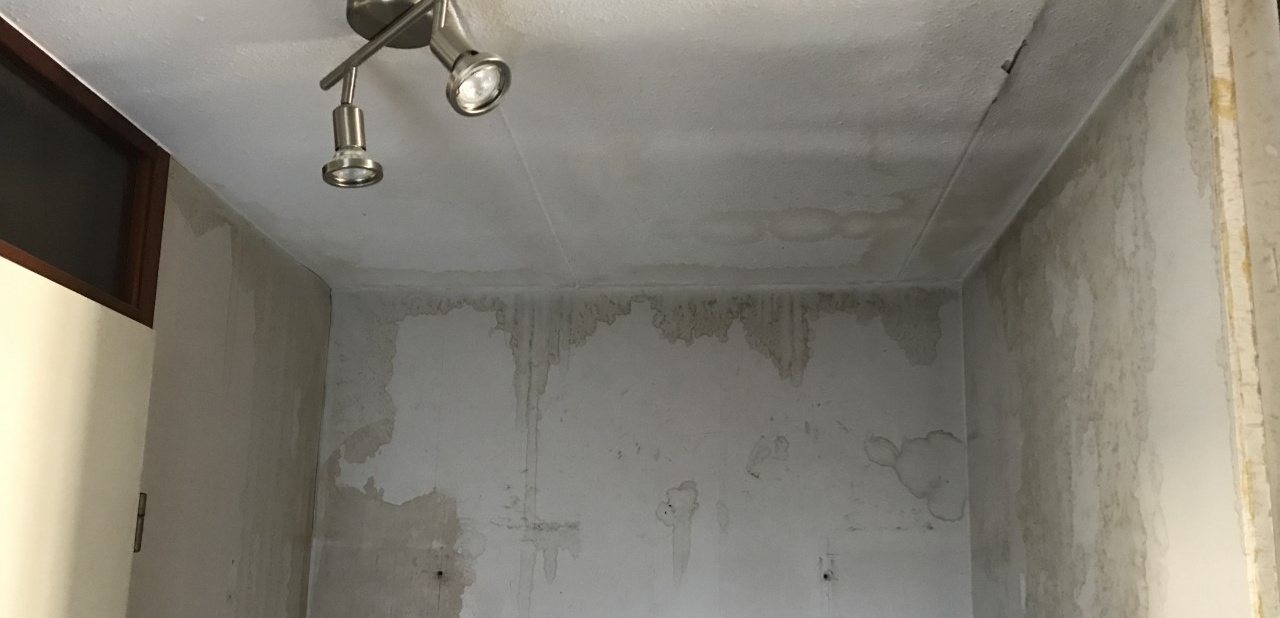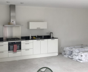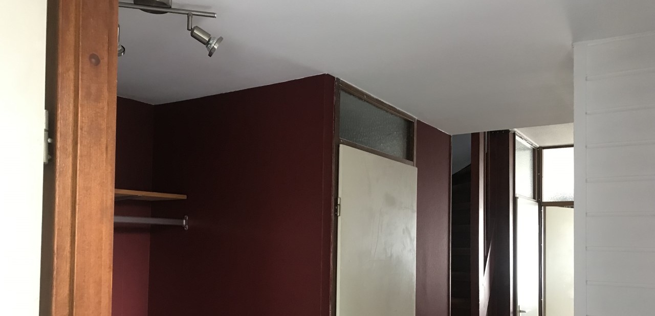 Plafond in hal na lekkage verwijderd en opnieuw geplaatst, muren behangen, schootjes geschilderd en muren in de keuken gesausd.